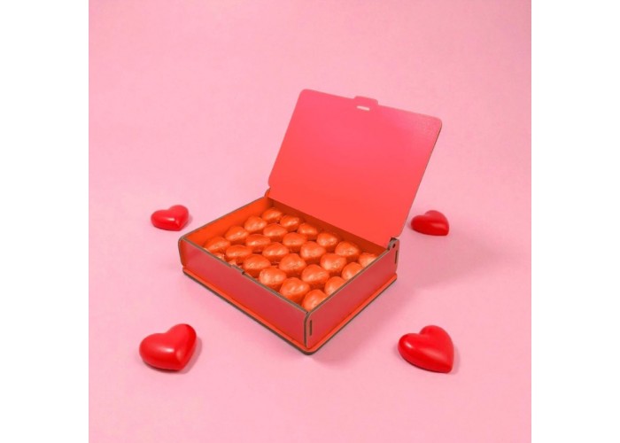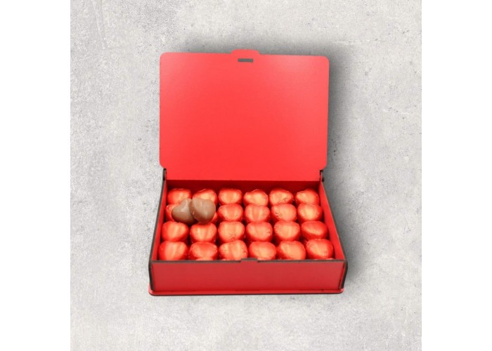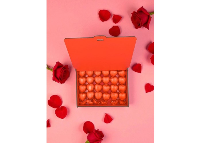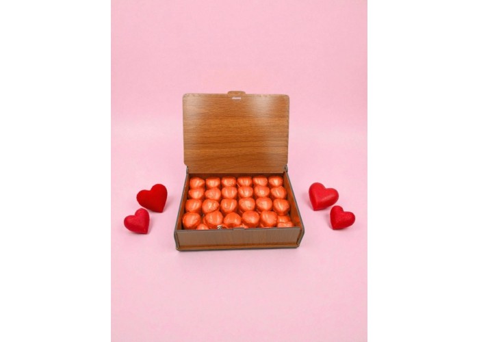 Sevgi dolu anlar için özenle hazırlanmış bu ahşap kutu, 50 adet kalp şeklinde çikolata ile dolu. Kırmızı folyo ile sarılı çikolataların yer aldığı, hem görsel olarak şık hem de duygusal anlamda etkileyici olan bu hediye, Sevgililer Günü, doğum günleri, yıldönümleri ve özel kutlamalar için ideal bir seçimdir.
