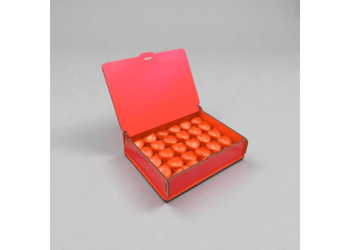 50 Adet Kalp Şeklinde Çikolatalı Kırmızı Ahşap Hediye Kutusu – Sevgi Dolu Tatlar