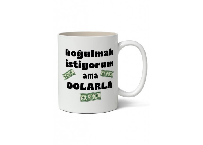 Boğulmak İstiyorum Ama Dolarla Tasarımlı Kupa Bardak Baskılı Kahve Kupa Bardak