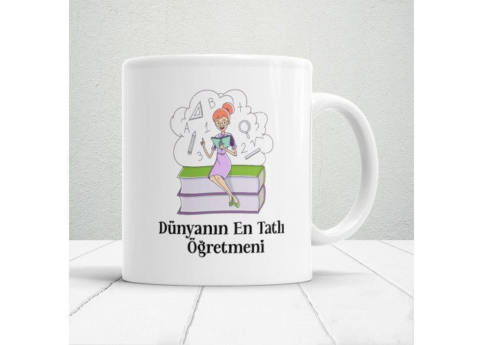 Dünyanın En Tatlı Öğretmeni - Öğretmenler Günü Temalı Baskılı Kupa Bardak Mod1