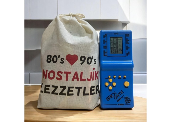 Kese Mavi Tetrisli Nostaljik Hediye Paketi 80'ler 90'lar