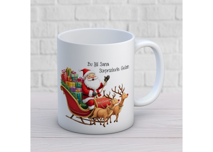 Noel Baba Figürlü Yılbaşı Temalı Hediyelik Kupa
