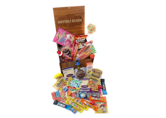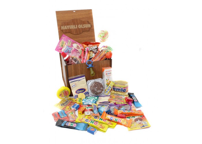 Nostaljik Paketler - Nostaljik Bakkal Ahşap Hediye Kutusu Küçük Boy ( Hayırlı Olsun )