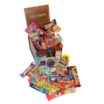 Nostaljik Paketler - Nostaljik Bakkal Ahşap Hediye Kutusu Orta Boy ( İyiki Varsın )