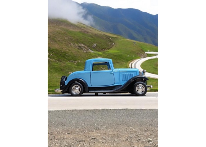 Nostaljik Klasik Metal Çek Bırak Araba Kapılar Açılır Mavi ( 1/36 Ölçek )