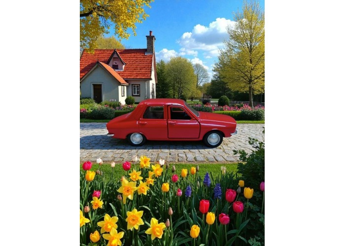 Nostaljik Metal Çek Bırak Kırmızı Araba Renault 12 Kapılar Açılır