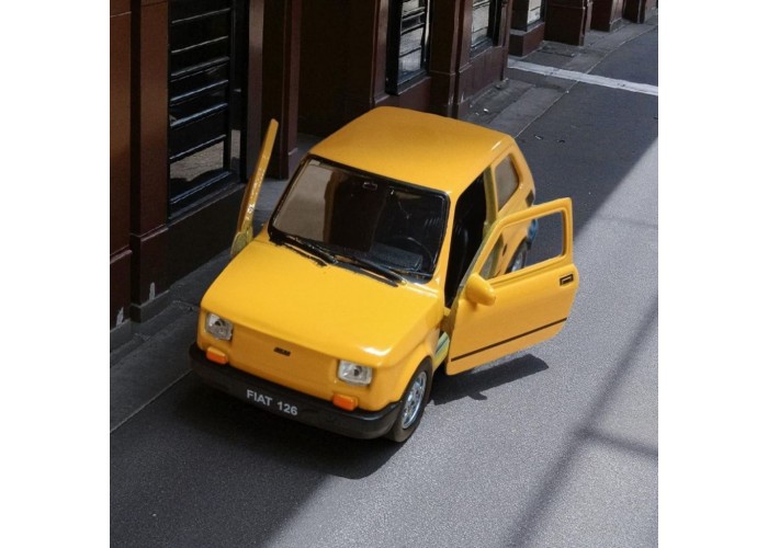 Nostaljik Metal Çek Bırak Sarı Fiat 126 Araba Kapılar Açılır