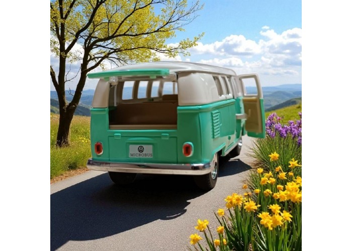Nostaljik Metal Çek Bırak Yeşil Wv Minibüs Araba Kapılar Açılır