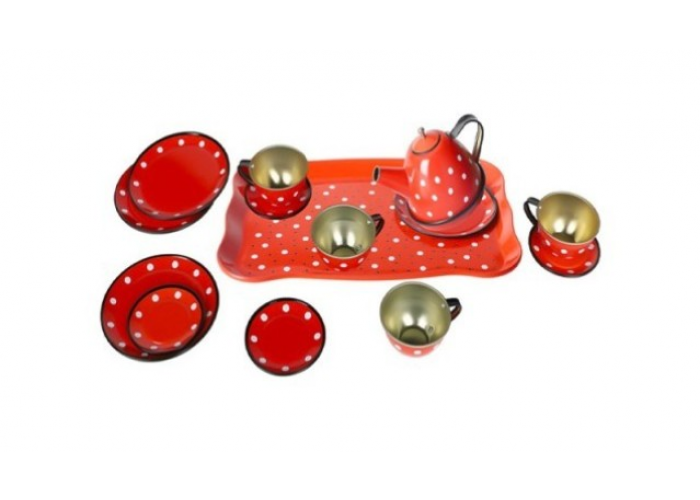 Miniklerin oyun dünyasına renk katan Puantiyeli Kırmızı Metal Çay Seti  , çocukların hayal gücünü geliştirirken eğlenceli bir rol oyunu deneyimi sunar. Gerçek çay zamanı atmosferini yansıtan metal çay takımı, dayanıklı yapısı ve sevimli tasarımıyla çocukların dikkatini çeker.