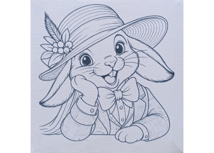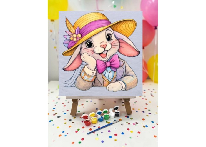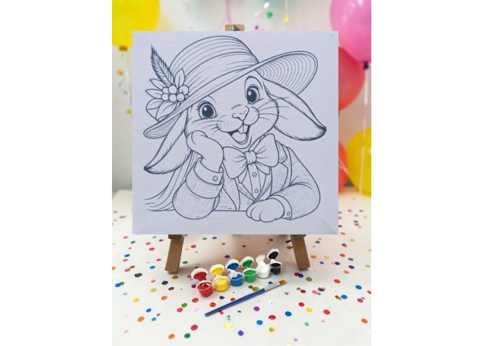 Şapkalı Tavşan Tuval Boyama Aktivite Seti 19x19 Cm (Tuval, Şövale, Fırça ve 6 Renk Akrilik Boya Seti)