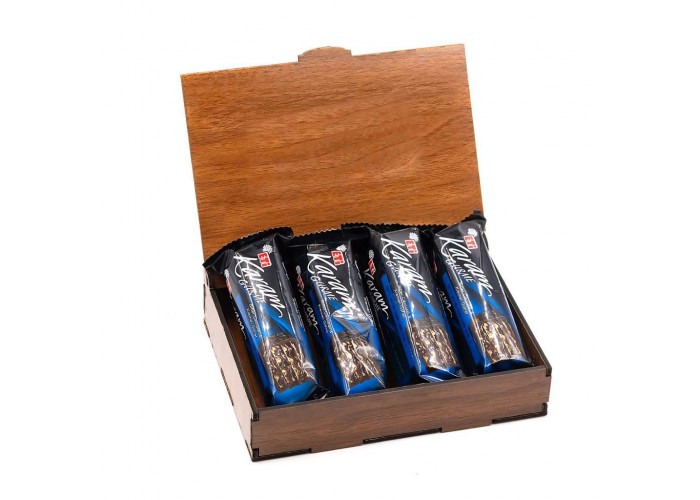 Sevdiklerinize Özel Ahşap Hediye Kutusunda 4 Adet Karam Gurme Bitter Çikolatalı