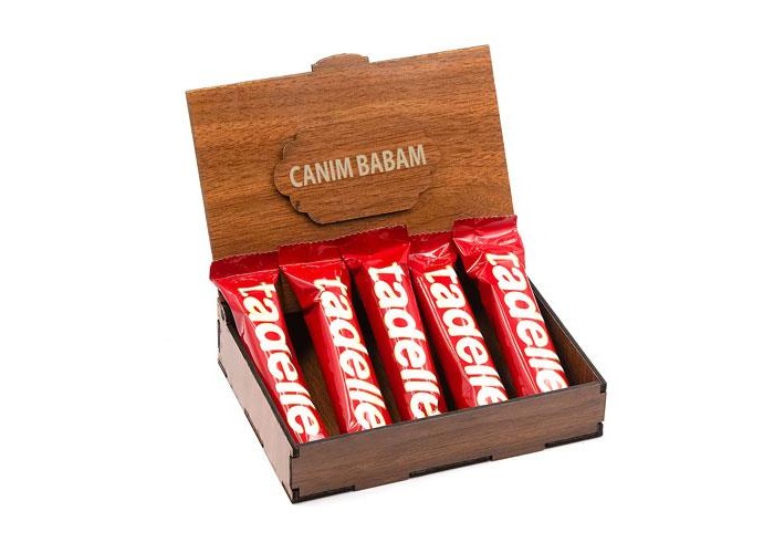 Sevdiklerinize Özel Ahşap Hediye Kutusunda 5 Adet Tadelle Sütlü Çikolata ( Canım Babam Yazılı )
