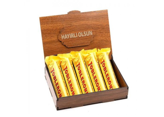Sevdiklerinize Özel Ahşap Hediye Kutusunda 5 Adet Toblerone ( Hayırlı Olsun Yazılı )