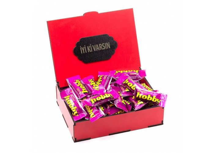Sevdiklerinize Özel Kırmızı Ahşap Hediye Kutusunda 24 Adet Hobby Mini ( İyi ki Varsın Yazılı )