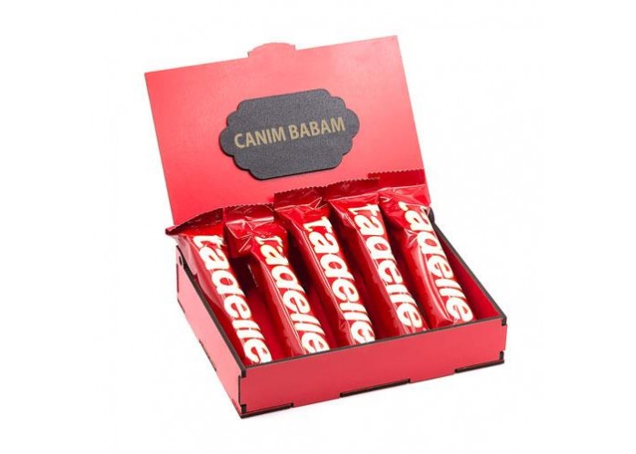 Sevdiklerinize Özel Kırmızı Ahşap Hediye Kutusunda 5 Adet Tadelle Sütlü Çikolata ( Canım Babam Yazılı )
