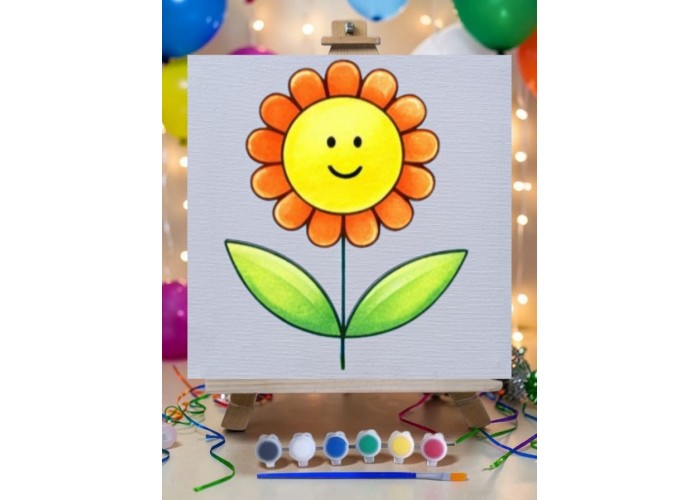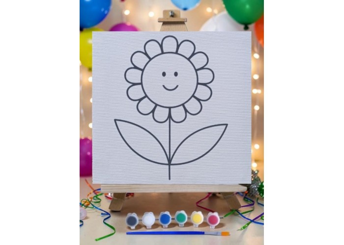 Sevimli Çiçek Tuval Boyama Aktivite Seti 19x19 Cm (Tuval, Şövale, Fırça ve 6 Renk Akrilik Boya Seti)