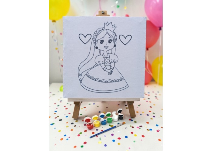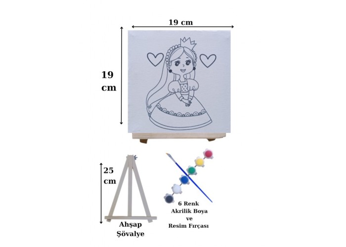 Tuval Boyama Seti Prenses Model 19x19 Cm (Tuval, Şövale, Fırça ve 6 Renk Akrilik Boya Seti)