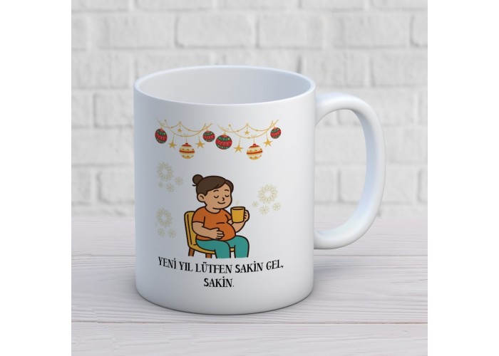 Yılbaşı Temalı Yeni Yıl Lütfen Sakin Gel Baskılı Hediyelik Kupa